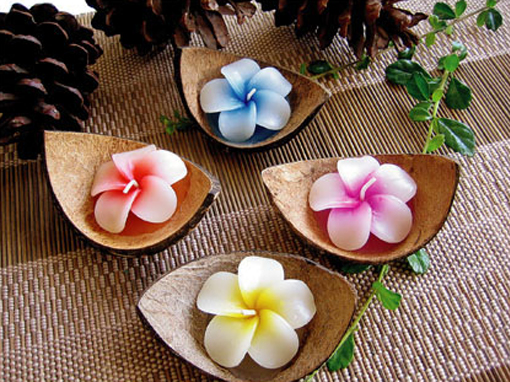 WC-G19 Plumeria or Frangipani or Hawaii candle in coconut piece. Our coconut candle is handmade and carefully hand poured for the highest quality. The coconut candles are natural and contain no harmful ingredients or any type of toxic material. Regardless of where you live in the world, you will be able to bring the tropical fragrance of Coconuts directly into your home, which will provide you with a soothing and refreshing fragrance that can’t be compared to anything else you’ve ever experienced.