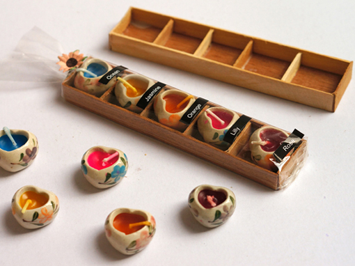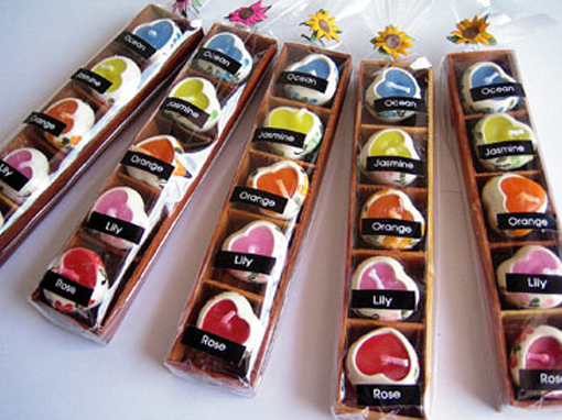 WP-I60 Candle in ceramic 5 pcs in wooden tray – Heart shape. There’re a set of 5pcs mini Heart ceramic candle packed in handmade reusable wooden box, beautifully packaged wrapped with a colorful decorative flowers as a final touch of class to this product.